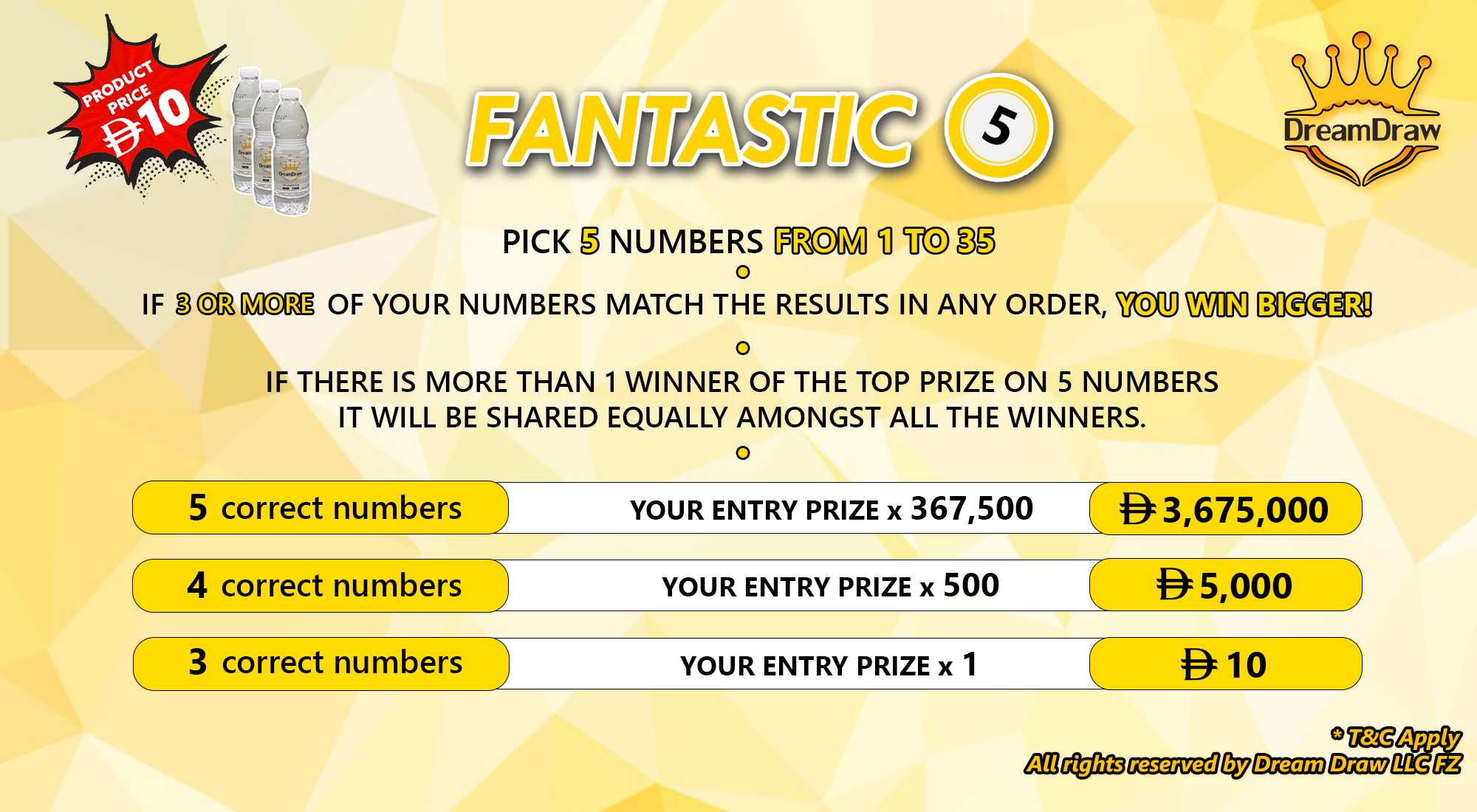 Product Prize: The cost of participating in FANTASTIC 5 is AED 10.